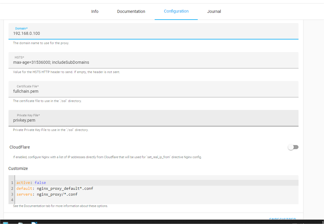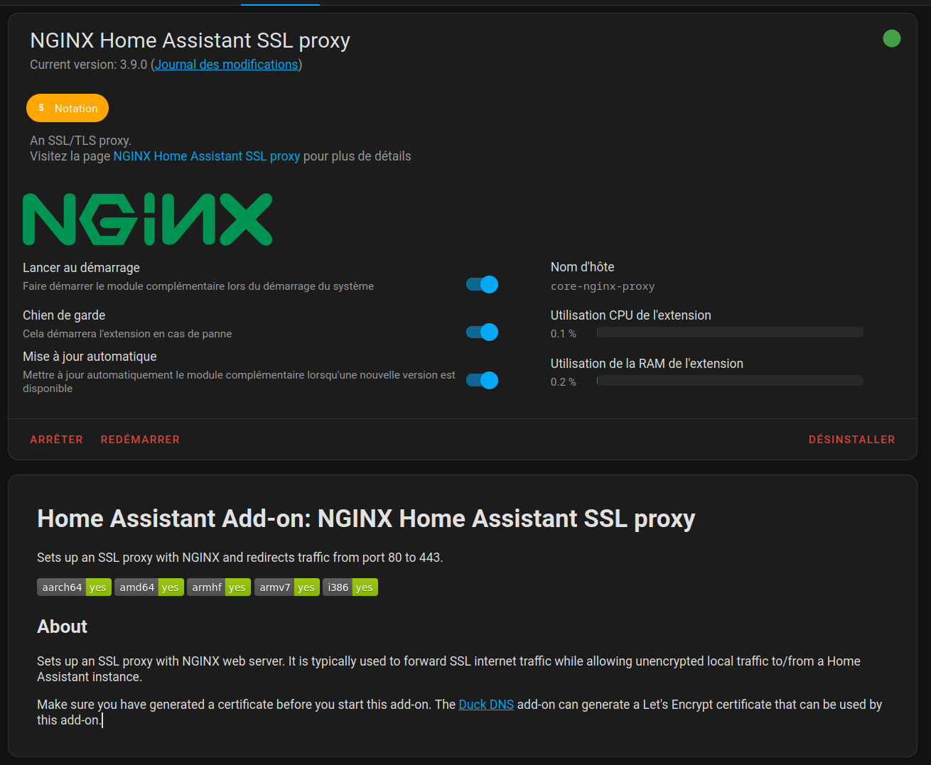 maintenant on repasse dans HA on vas installer un autre module ok on vas pas faire comme dans le tuto on vas ajouter NGINX Home Assistant SSL proxy en plus de let’s encrypt