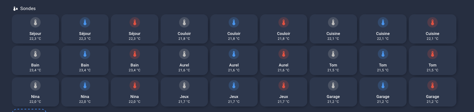 Je vais mettre un pavé dans la mare, mais perso je n’utilise pas les cartes tuile quand l’objectif est d’afficher une valeur (température, etc) : la taille de la valeur est bien trop petite et pas assez lisible. Une carte entité sera elle beaucoup plus lisible.