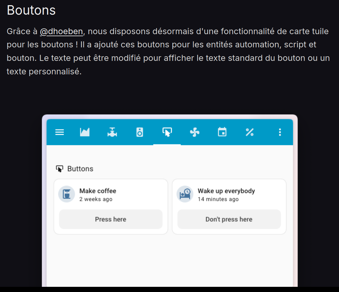La fonctionnalité Buttons sur la carte Tuile intéresse, mais je suis pas arrivé a trouver comment l’activer/l’utiliser, une idée ?