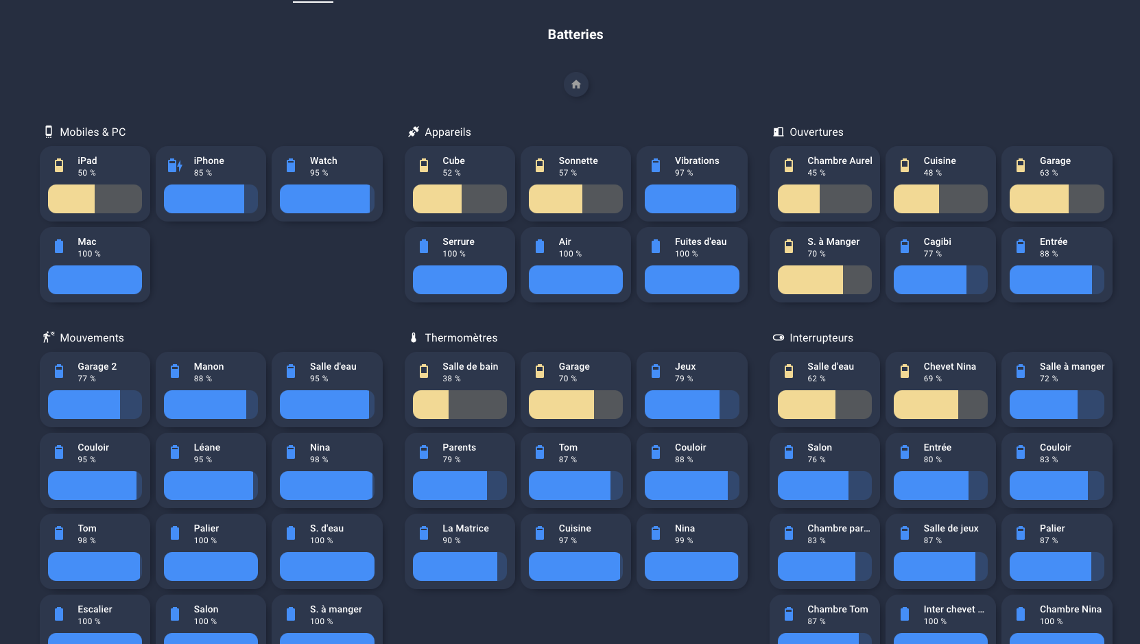 Les batteries, heureusement la couleur est automatiquement prévue en natif via 3 seuils, donc ca va.