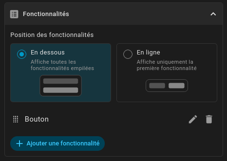 Puis, que sur certain type d’entity, dans Fonctionnalités, on peut cliquer sur Ajouter une fonctionnalité : Bouton