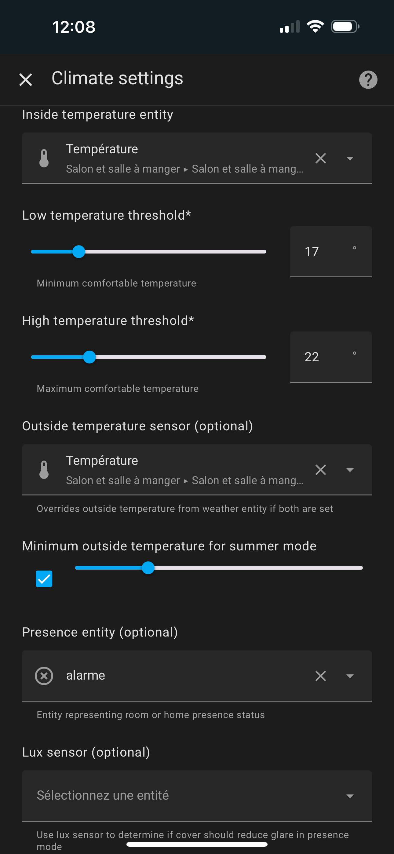 Tu vois actuellement, je suis en cours de test, il fait plus chaud que la température de confort. Max demandé et le volet ne se ferme pas et je ne suis pas chez moi, j’ai beau faire tous les tests, je comprends pas ça ne fonctionne pas.