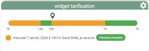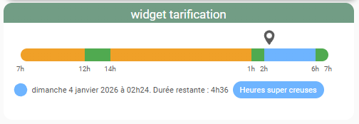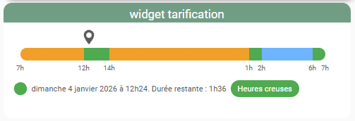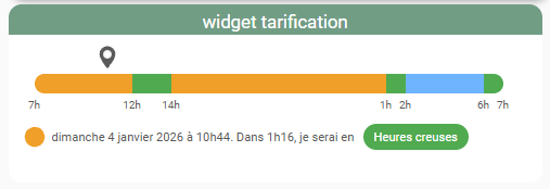 L’input_text.widget_tarif a cette forme : « 0|01:00|6.0|1|13:00|2.0|0|02:00|4.0 ». Le code récupère chaque valeur par un split(« | ») afin d’assurer le fonctionnement dynamique de la carte : déplacement du curseur, couleur du disque devant le commentaire, texte du commentaire et répresentation graphique de la (ou des plages) sur la barre.