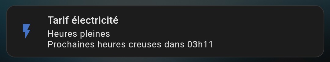 Par ailleurs, afin de simplifier l’usage, je joins un capteur binaire qui passe sur « on » dès qu’une plage d’heures creuses (et/ou heures super creuses) débute et repasse sur « off » quand elle se finit. Il peut donc être utilisé directement dans toute automatisation.