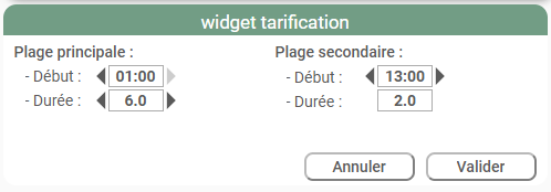 Vous pourrez donc définir le début et la durée de la plage principale, le début de la plage secondaire si la durée de la plage principale est de moins de 8 heures et mettre une plage Heures super Creuses si toutes les conditions sont réunies.