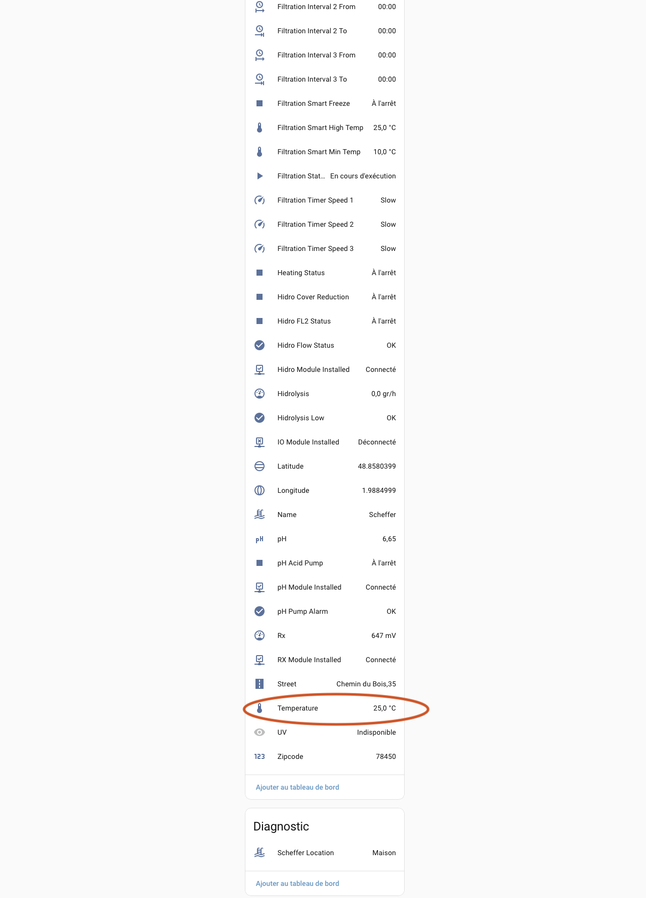 Je voudrai juste afficher la température de l’eau de la piscine dans la pièce jardin ou est la piscine sans avoir à exposer tous les paramètres de l’électrolyseur dans le jardin ou est la piscine.