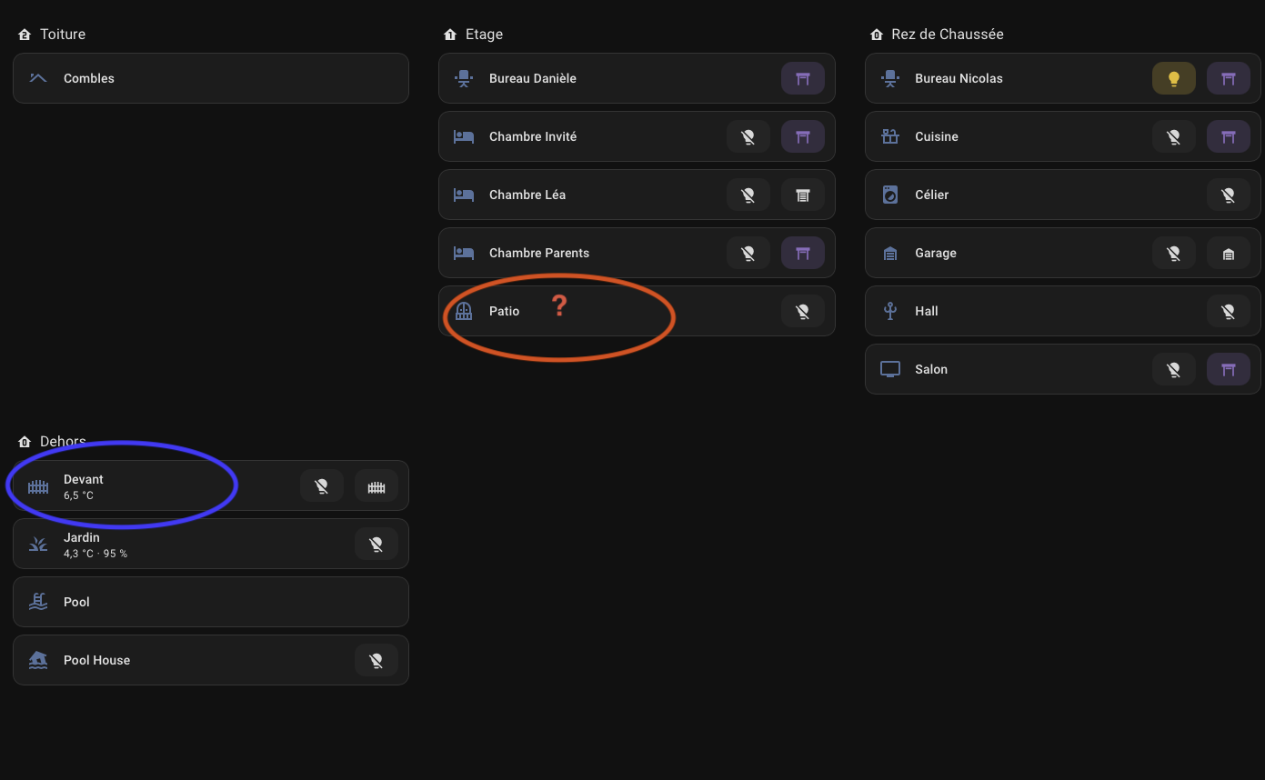 Ca c’est un de mes soucis, suite au déplacement d’un capteur d’une pièce à l’autre le tableau de bord Area n’arrive pas à se mettre à jour.
