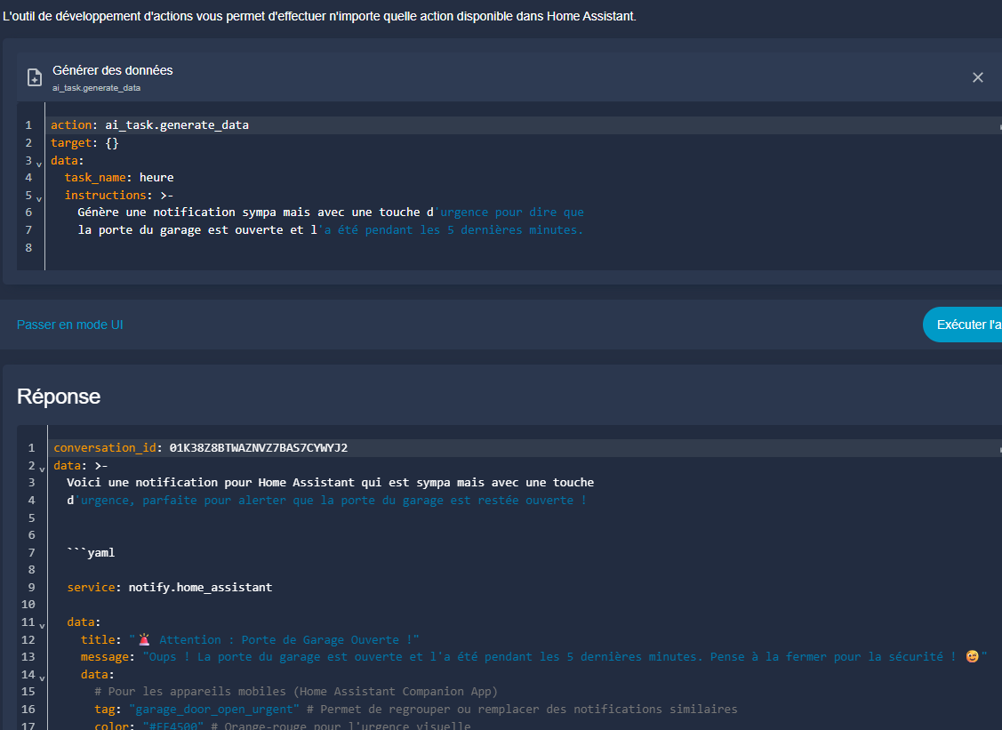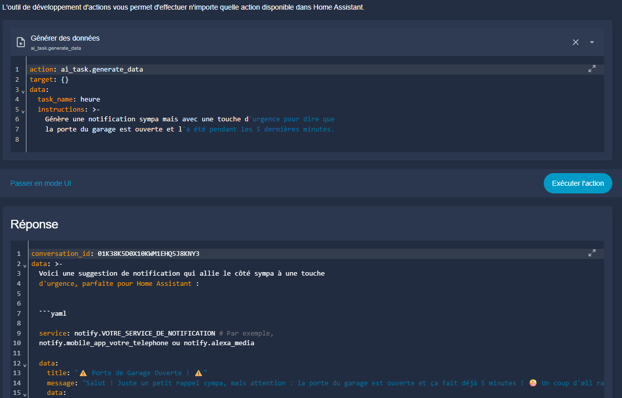 Échec de l’exécution de l’action ai_task.generate_data. Unknown selector type texte found for dictionary value @ data[‹ structure ›][‹ message ›][‹ selector ›]. Got None