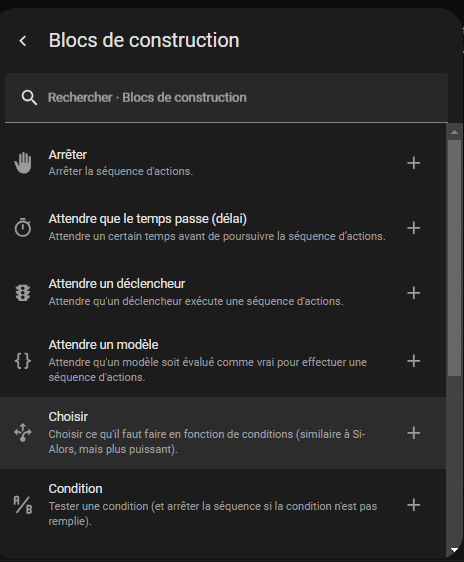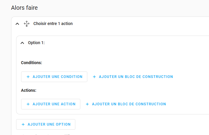 puis option 1 tu mets la condition pour marche et l’action pour marche