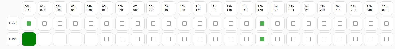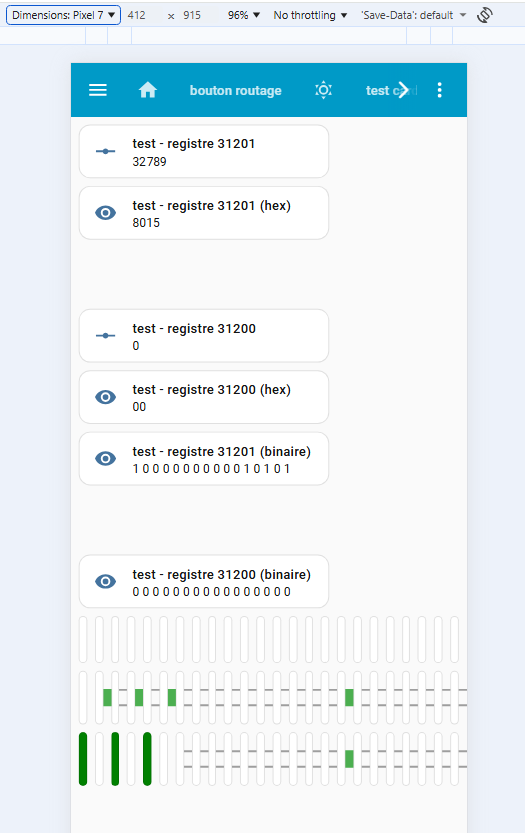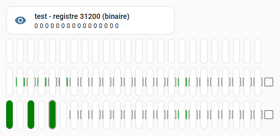 Après un nombre incalculable d’heures passées (je n’ose même pas calculer combien…) j’ai réussi pas trop mal à tout implémenter dans une seule grosse button-card. Ca m’a permis de découvrir tout ce dont elle était capable (il y a un paquet de choses quand on veut aller loin !). J’ai réussi à coder la logique du registre global en input_text (en réalité c’est pas ça car j’ai pas géré l’endianess mais pour la demo on s’en moque)