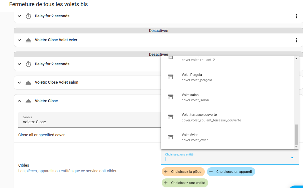 Dans l’onglet ‹ Entités › : mes volets et mon portail ;