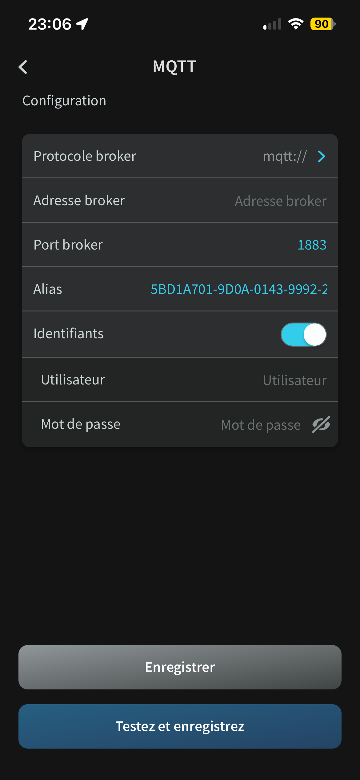 Il fait renseigner l’adresse, l’utilisateur et mdp de votre broker mqtt.