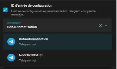 J’ai configuré mon compte Telegram avec un bot créé et je reçois sans problème les messages provenant de Home Assistant (par exemple, lorsqu’on sonne à la porte, etc.).
