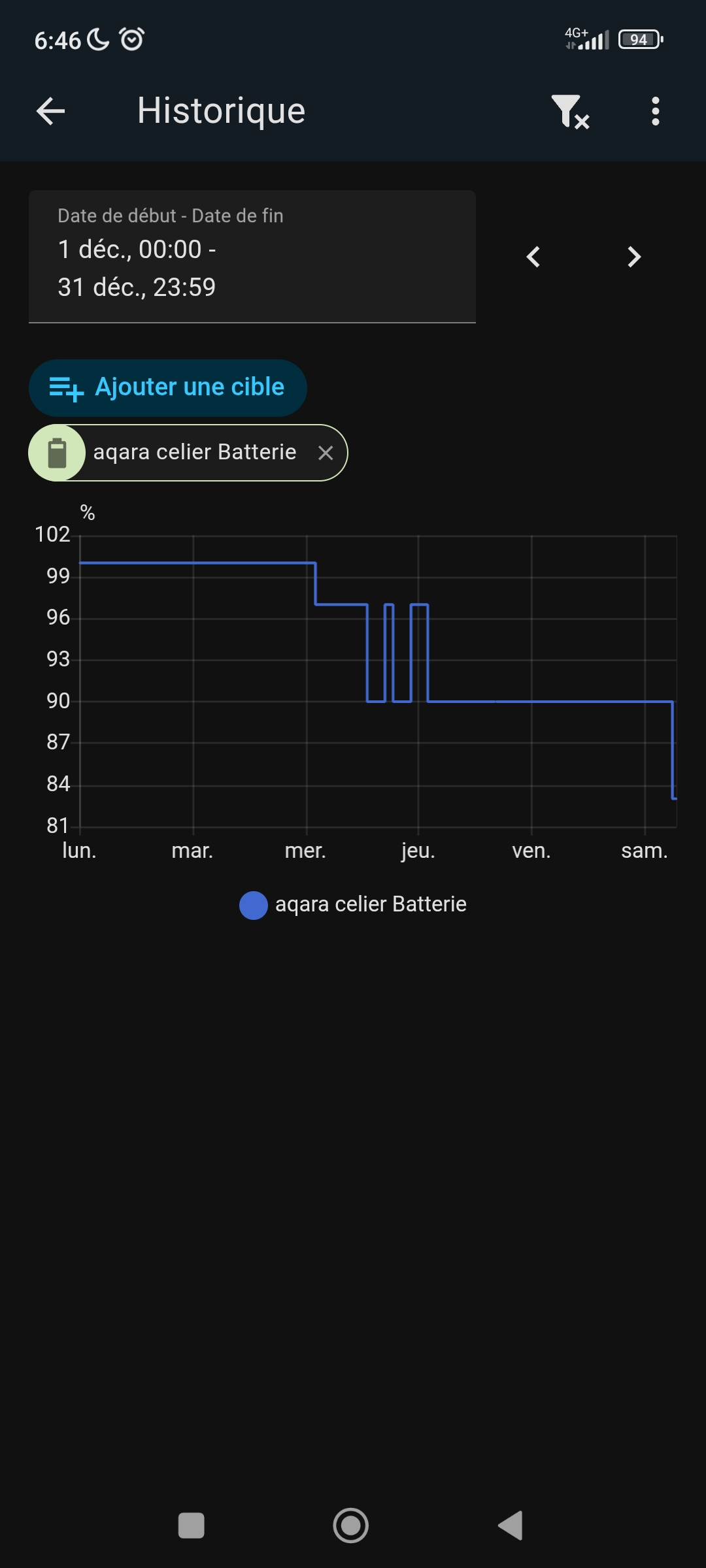 bon j ai encore perdu des pourcentages mais en regardant le graphique je constate un yoyo des pourcentage donc les piles neuves doivent finalement etre usée , je vais suivre l evolution