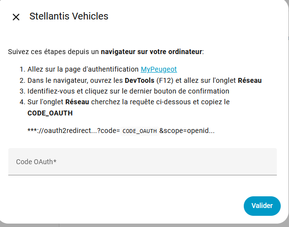Mypeugeot fonctionne sur mon smartphone (bluetooth donc trajets, e-routes, climatisation, charge, gadgets). Maintenant c’est l’integration Stellentis qui me réclame le code_oauth2