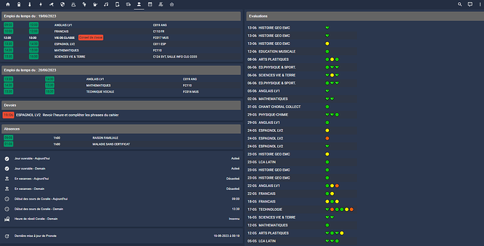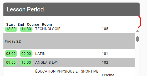 une fois que tous les cours sont passés , l’emploi du temps du jour reste encore 1 heure puis est remplacé par l’emploi du temps du lendemain