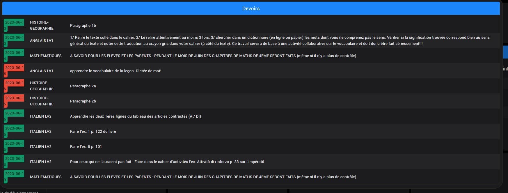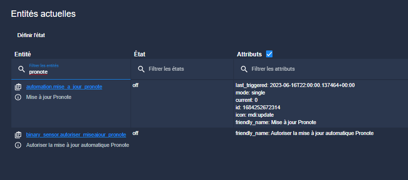 En effet, quand je regarde l’état de mes sensor, j’ai l’impression qu’ils se mettent bien à jour toutes les 15min, néanmoins, j’ai toujours l’emploi du temps d’hier.