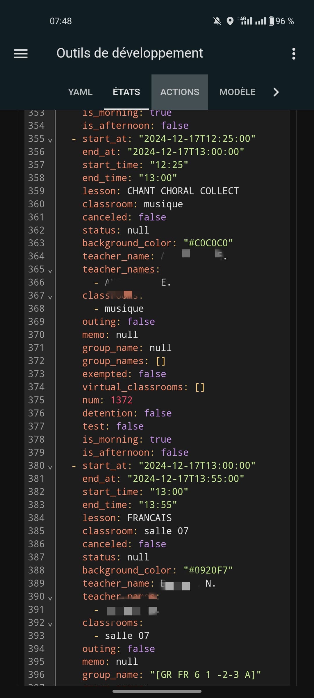 Pour les dates, j’applique le fuseau horaire renseigné dans HA, donc vérifie peut-être ce point là.