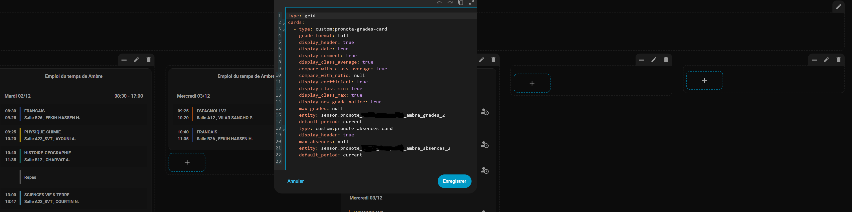 j’ai redémarré HA, réinstallé pronote, réinstallé les carte etc… rien n’y fait !