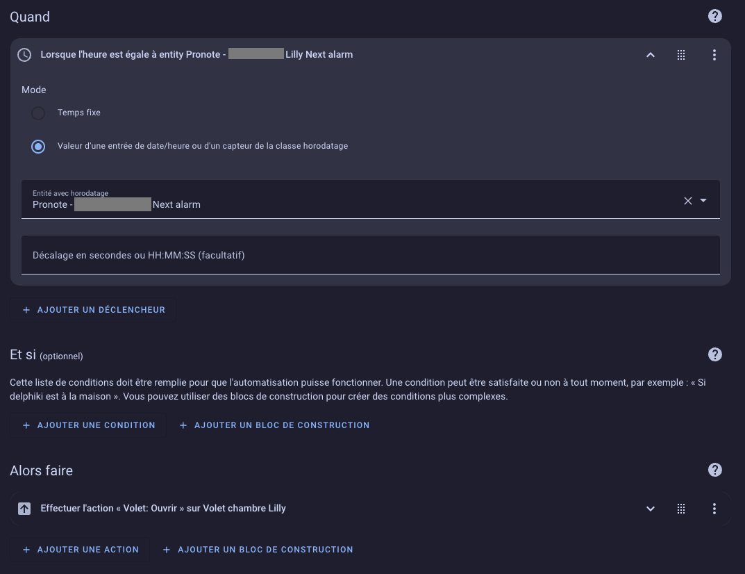 J’ai juste un souci avec l’automatisation de l’ouverture des volets en fonction de l’heure du 1er cours.