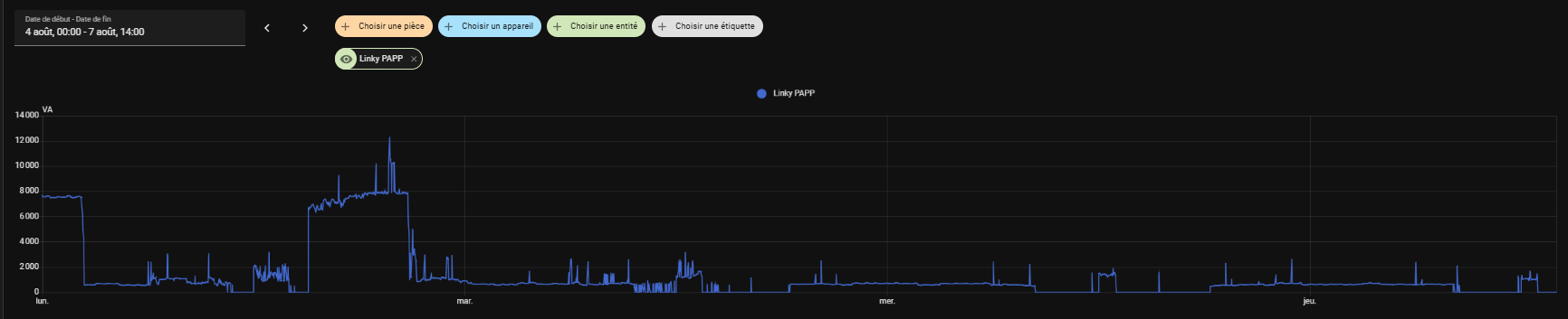 PAPP donnée par ton Linky. Comme ça a été expliqué, c’est une puissance apparente qui ne reflète en aucun cas la consommation instantanée réelle.