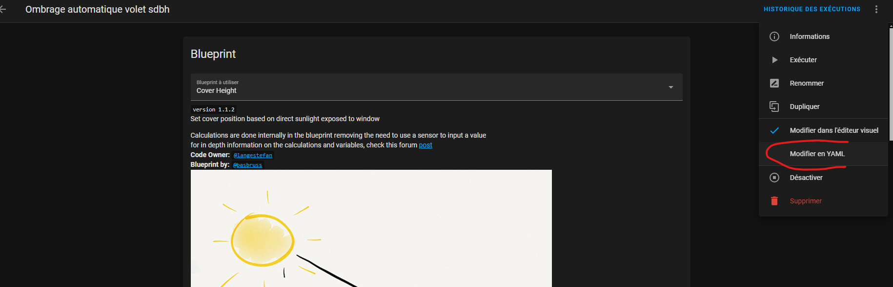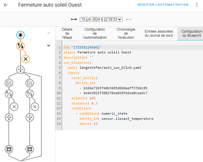 Bonjour. Puis-je profiter de ce sujet pour demander des précisions sur le fonctionnement de ce type de blueprint ? C’est une variation « permanente » de la position du volet, dès que le soleil tape dans l’ouverture on adapte la position pour éviter de faire rentrer la lumière et on réouvre une fois le soleil passé ? Comment se passent les débuts ou fins de journée, ouverture et fermeture complète via le blueprint ou via d’autres automatismes ? Merci.
