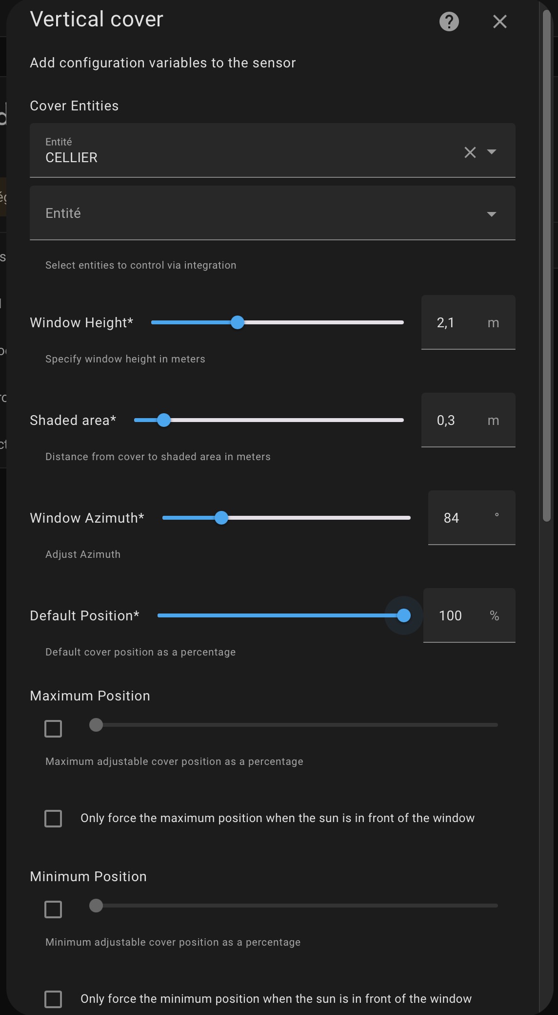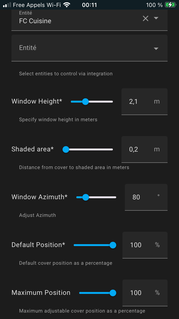 En test sur une porte fenêtre quasi plein Est (avec le volet dans HA, 0% = fermé, 100% = ouvert), mon volet qui était entrouvert (10%) s’est ouvert environ 1h après le couché du soleil avec la config ci dessous. Normal ?