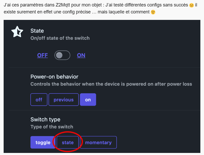 Déjà j’ai du mettre un délai avant et après car sinon il allume et eteint aussitot la lumière. De plus il s’agit d’un switch qui contient un état off/on. Le toggle ne marche pas, juste le turn_on permet d’allumer la lumière … mais bizzarement turn_on eteint aussi la lumière, on dirait que ca fonctionne comme un toggle.