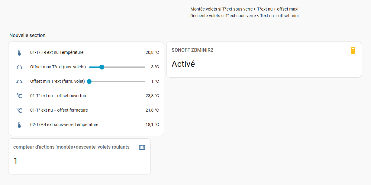- T° ext+ offset fermeture > T° bocal (alors fermeture volet)