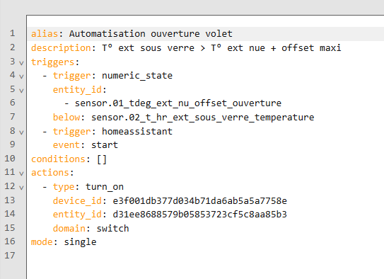 Je précise que je suis ultra-débutant en HA, donc on doit pouvoir faire plus concis pour les automatisations, sans aucune maitrise du YAML entre autres, je passe donc par les propositions de l’onglet paramètres, que je découvre petit à petit.