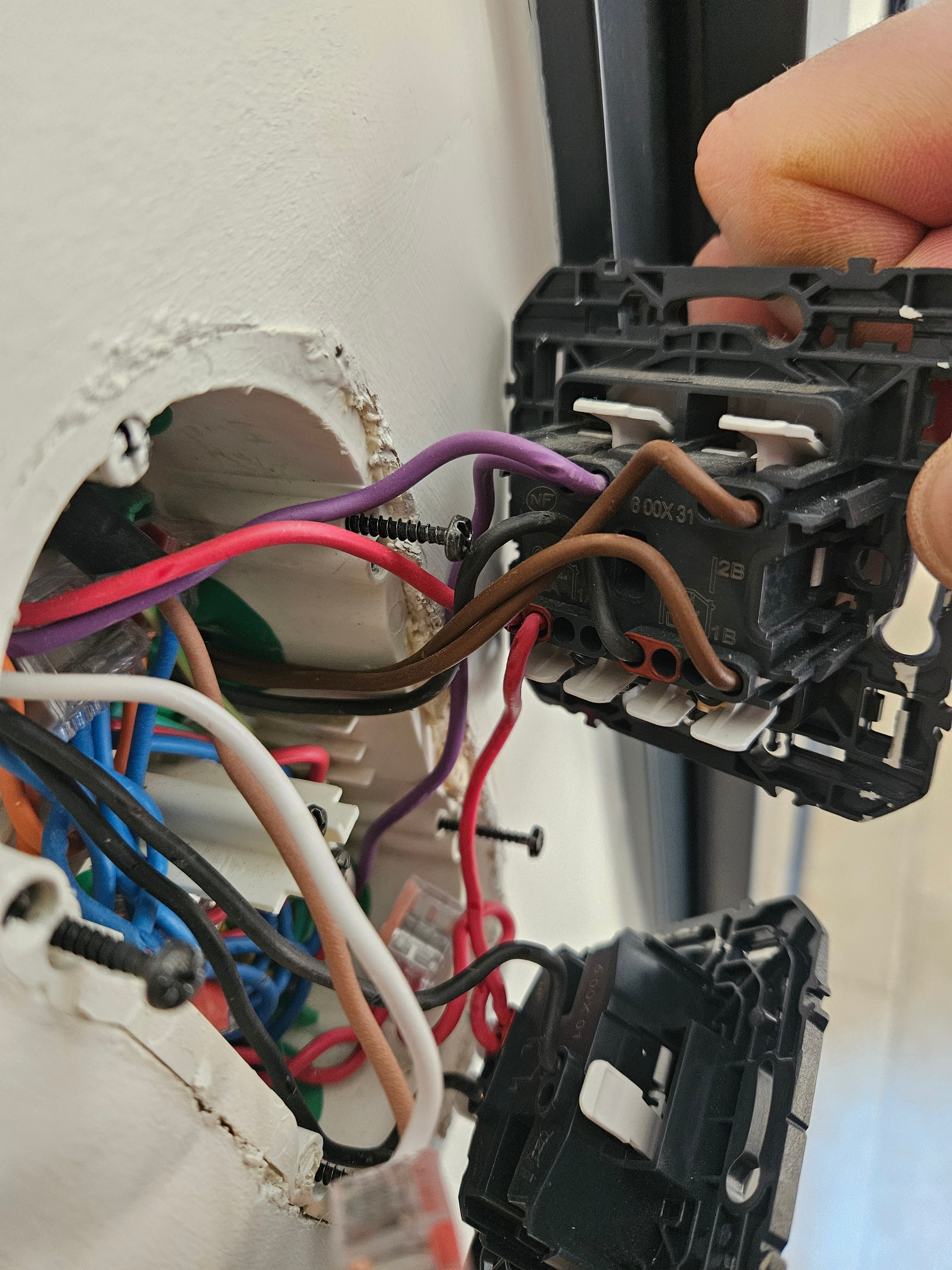 Et le fil blanc de la 4eme position du wago va vers le L du va et vient de l’inter du garage et celui en 5eme position va vers le VetV de la maison
