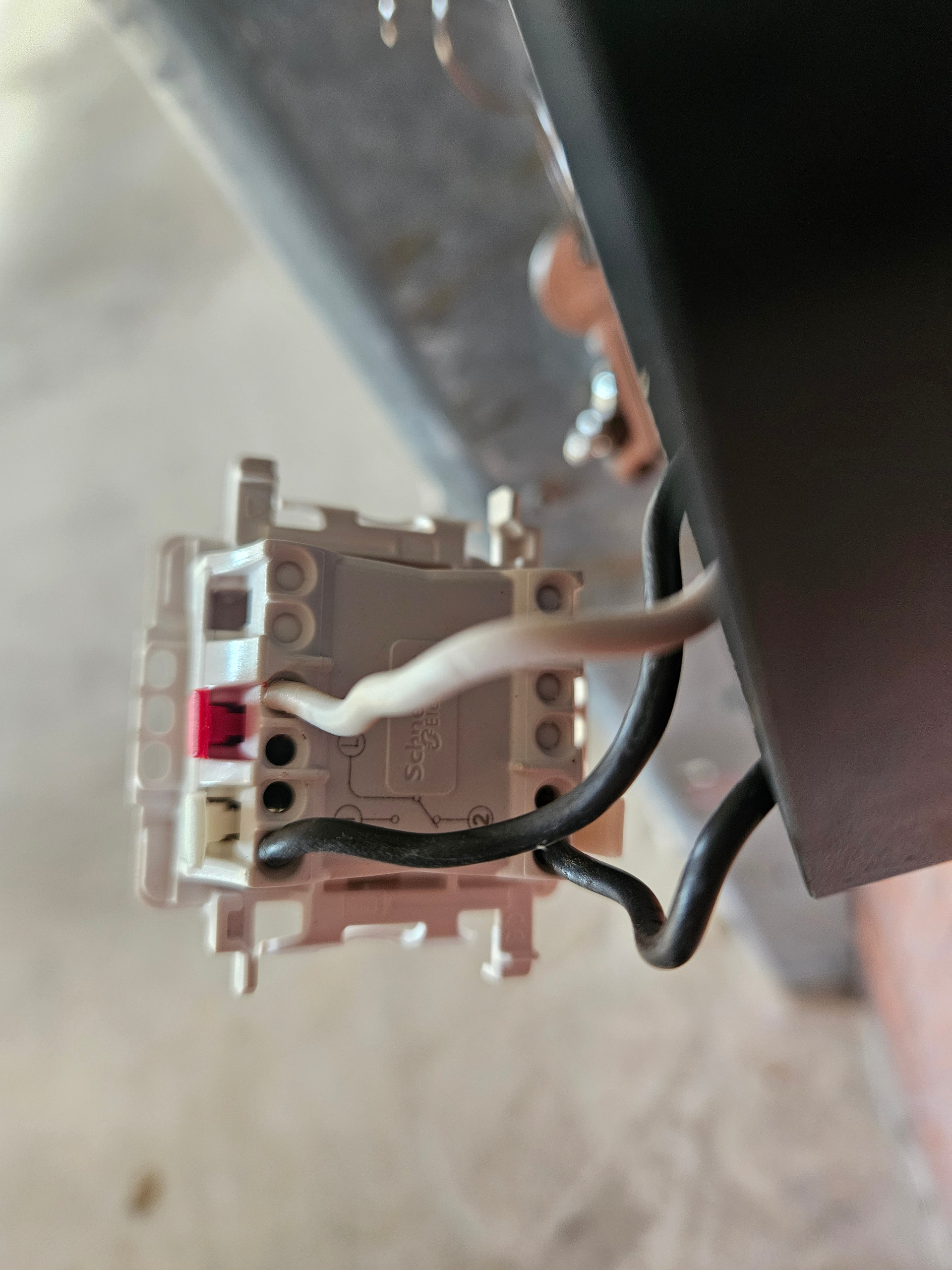 Pour le fil blanc du dessus, lorsqu’il est coupé coupe la lumiere maison. Je viens de regarder il y a un domino qui transforme le fil blanc en fil marron de la lampe