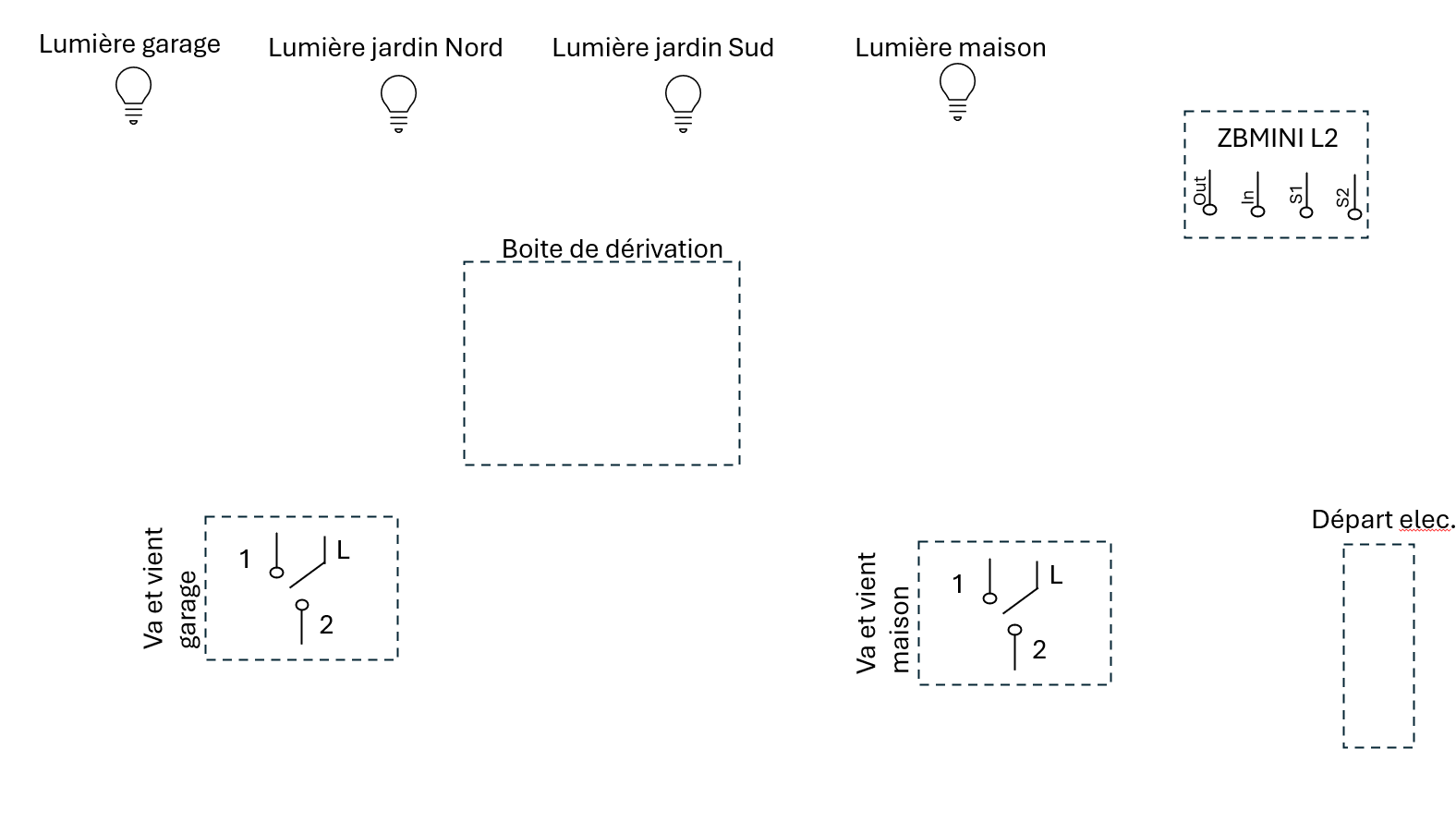 J’ai déjà pris le temps de lire plusieurs topics concernant la domotisation d’un va-et-vient, mais malgré cela je n’arrive pas à trouver une solution qui fonctionne dans mon cas.
