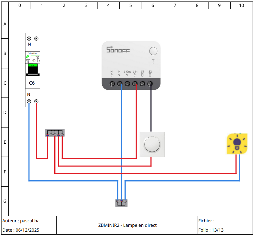 Pour le schéma, c’est le schéma classique de sonoff, sauf que tu ne branche pas la lampe sur la sortie, mais directement sur la phase (alimentation directe)