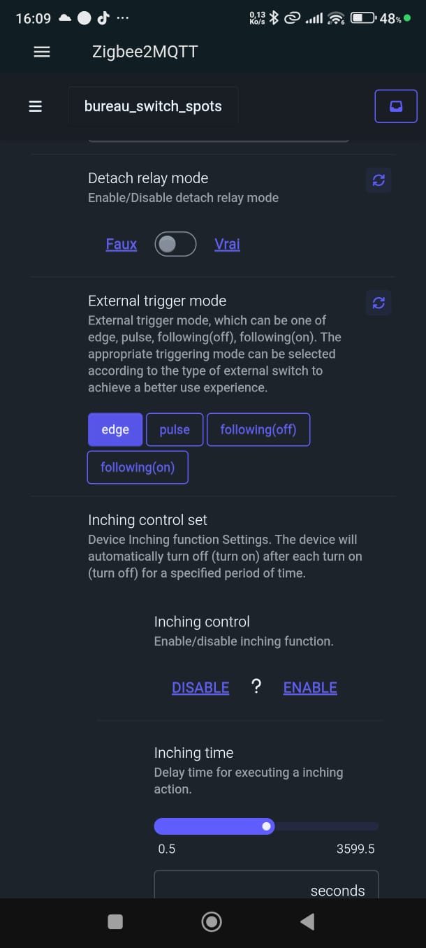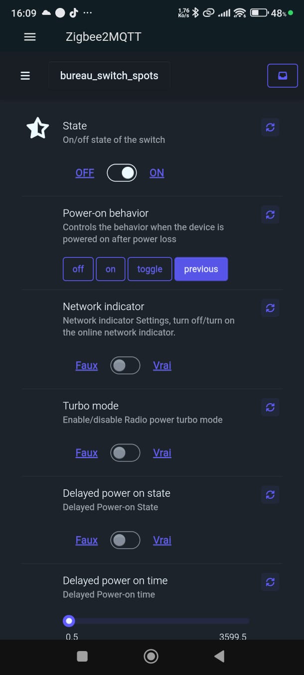 bascule l'état des spots du bureau. Le relais du ZBMINIR2 est en mode detach,