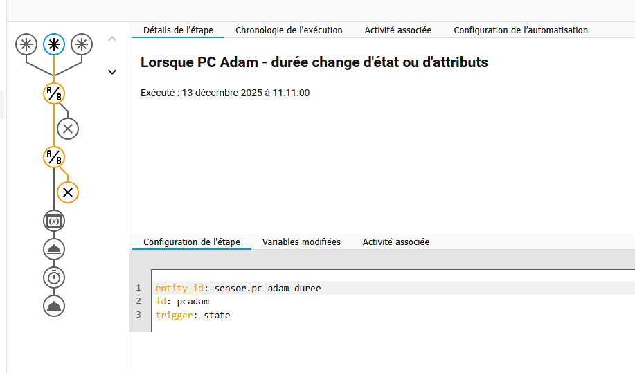 Cette automatisation se déclenche exactement après 35 minutes de TV allumée (dans la bonne fenêtre horaire).