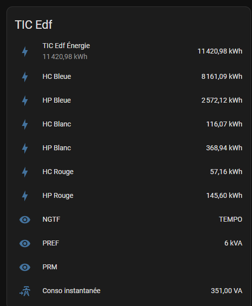 Par contre je ne comprend pas le fonctionnement de la conso EDF. La conso instantanée n’est pas bonne. C’est le cumul des heures et non la conso instantanée qui remonte.