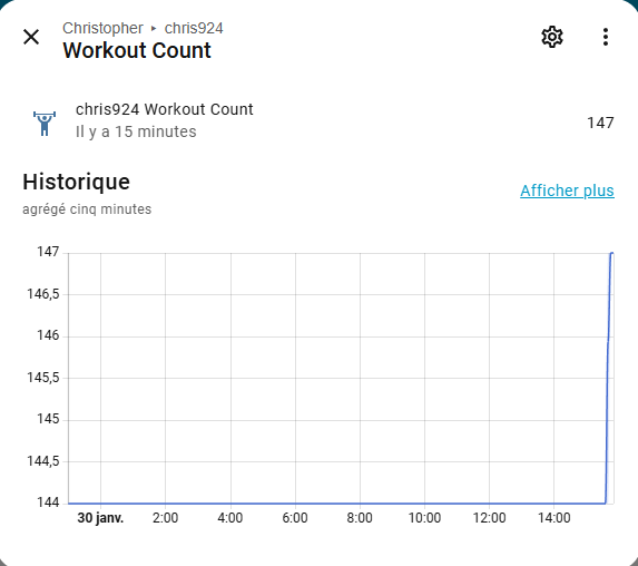 J’ai essayé avec le sensor « sensorchris924_workout_count » qui comptabilise le nombre d’entrainement :