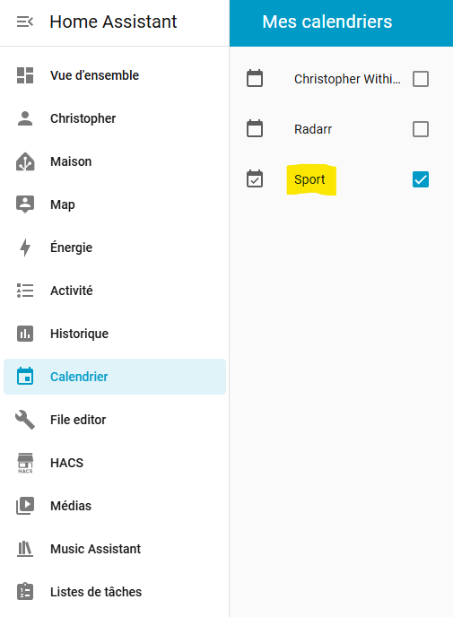 J’ai créé un calendrier que j’ai appelé « Sport »