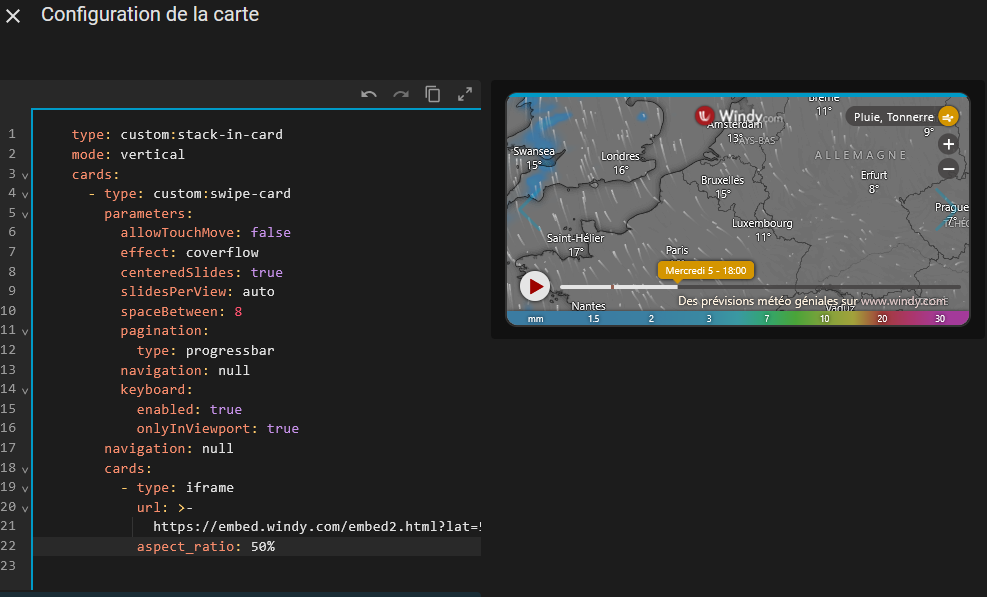 bonjour , je souhaite intégrer une carte météo animée. j’ai suivi ce fil d’aide:
