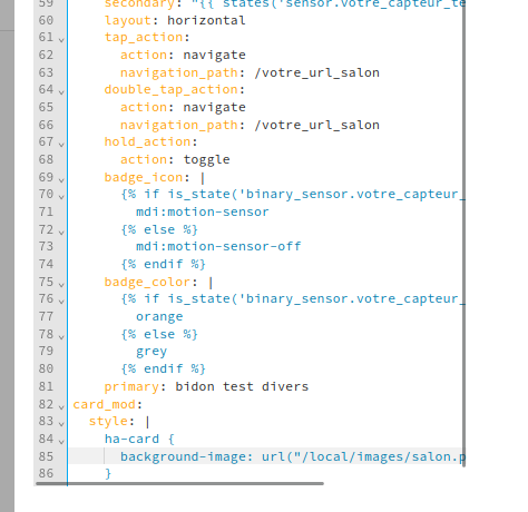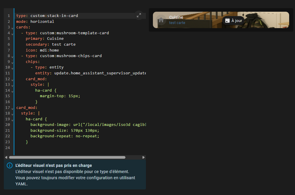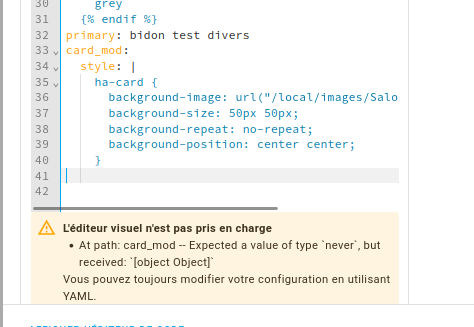 Alors attention, car il y a un bug avec la carte vertical-stack-in-card, avec card mod. Ça efface le code de card-mod quand tu réédites la carte. Je pense que ca viens de