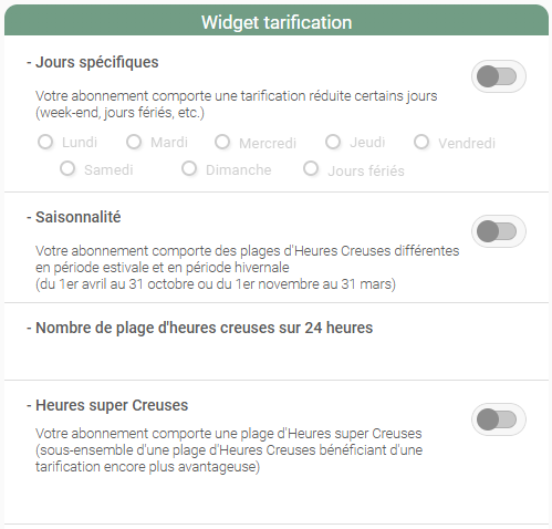 Si les utilisateurs du forum ayant un abonnement sur le principe des heures creuses pouvaient me donner les spécificités de leur abonnement, ça m’aiderait à concevoir le moteur de configuration de la carte. Je pourrais ainsi mettre en place un capteur binaire « heures creuses » dynamique pouvant être utilisé dans des automatisations.