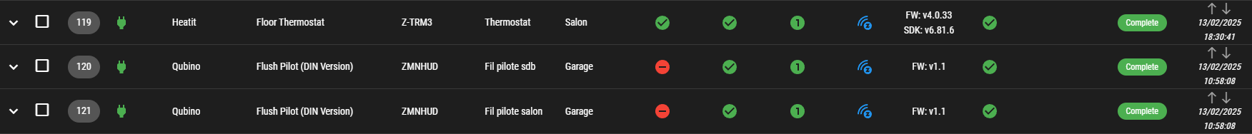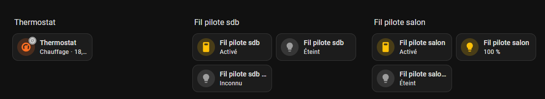 si j’agit sur les réglette de « lumière » du fil pilote sur l’interface de home assistant, par exemple la 2ème, je peux passer mon chauffage de « DEL »(affiché sur son écran : chauffage à l’arrêt d’après la notice) à sa température à lui (c’est à dire 15 degrés)