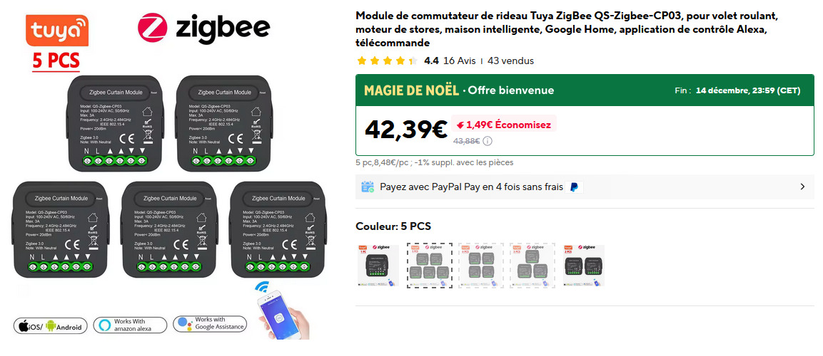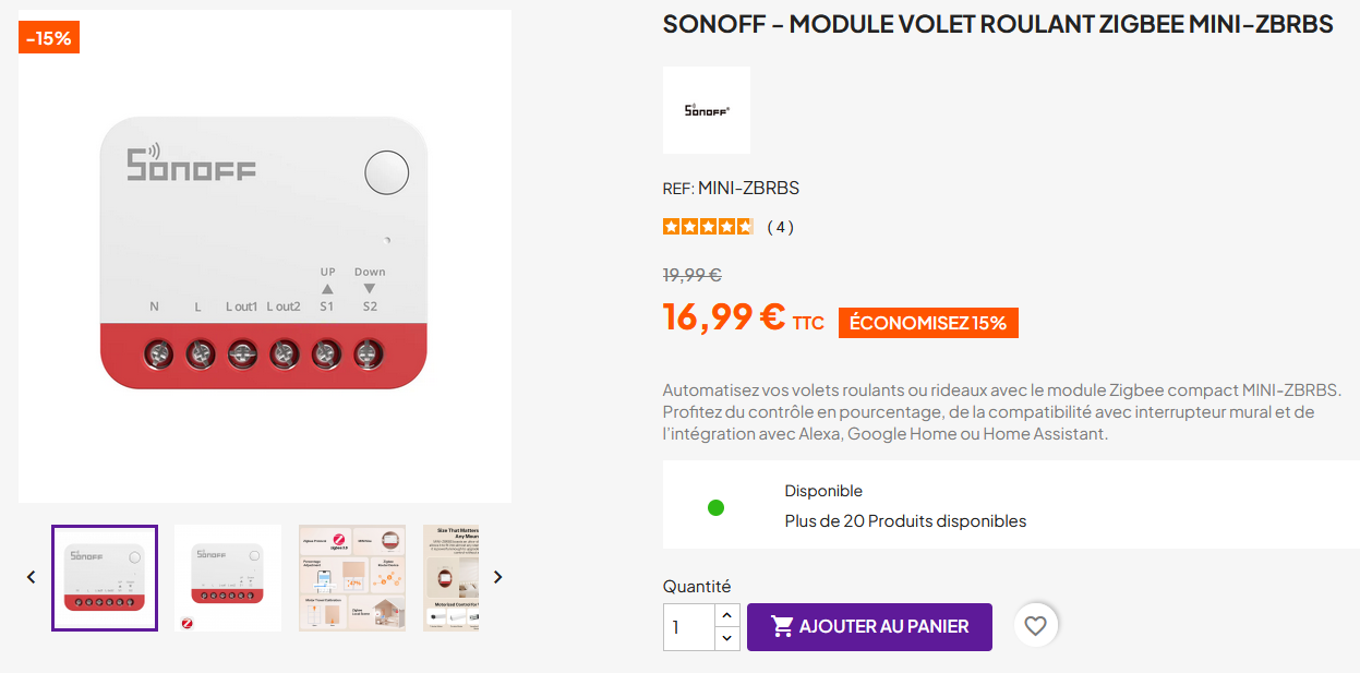 Je souhaite les piloter en Zigbee et je suis à la recherche de micro modules à placer dans les boitier de chaque interrupteurs. L’idée étant de pouvoir continuer à utiliser les boutons physiques + pouvoir utiliser les fonctionnalités à distance via HA.