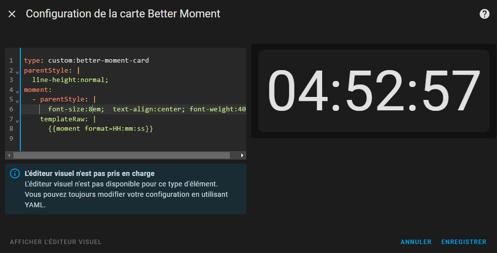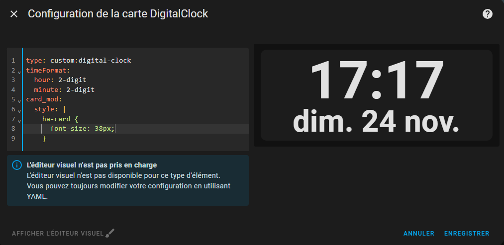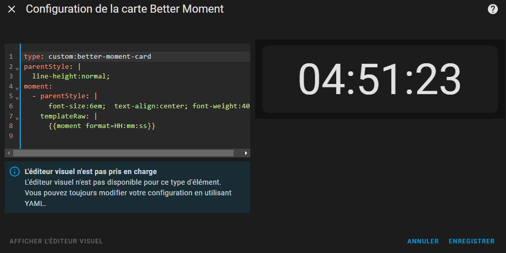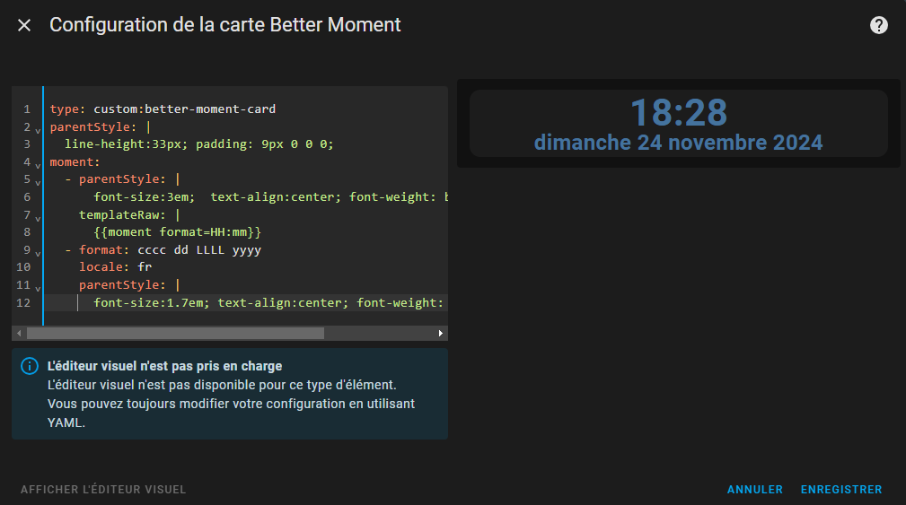 Après, ca doit être possible, avec un button-card qui inclus la carte better-moment-card ou levelace-digital-clock.