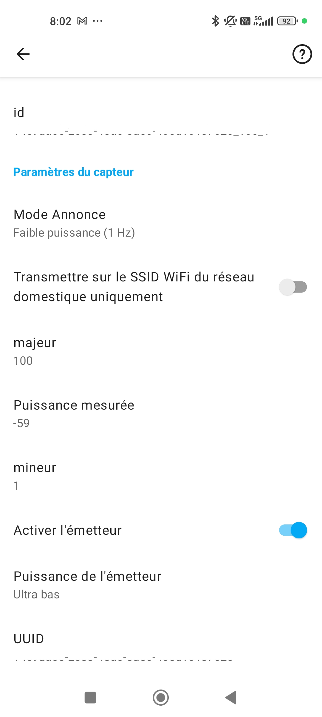 Oui, le capteur est bien activé et l’UUID a été saisie dans iBeacon