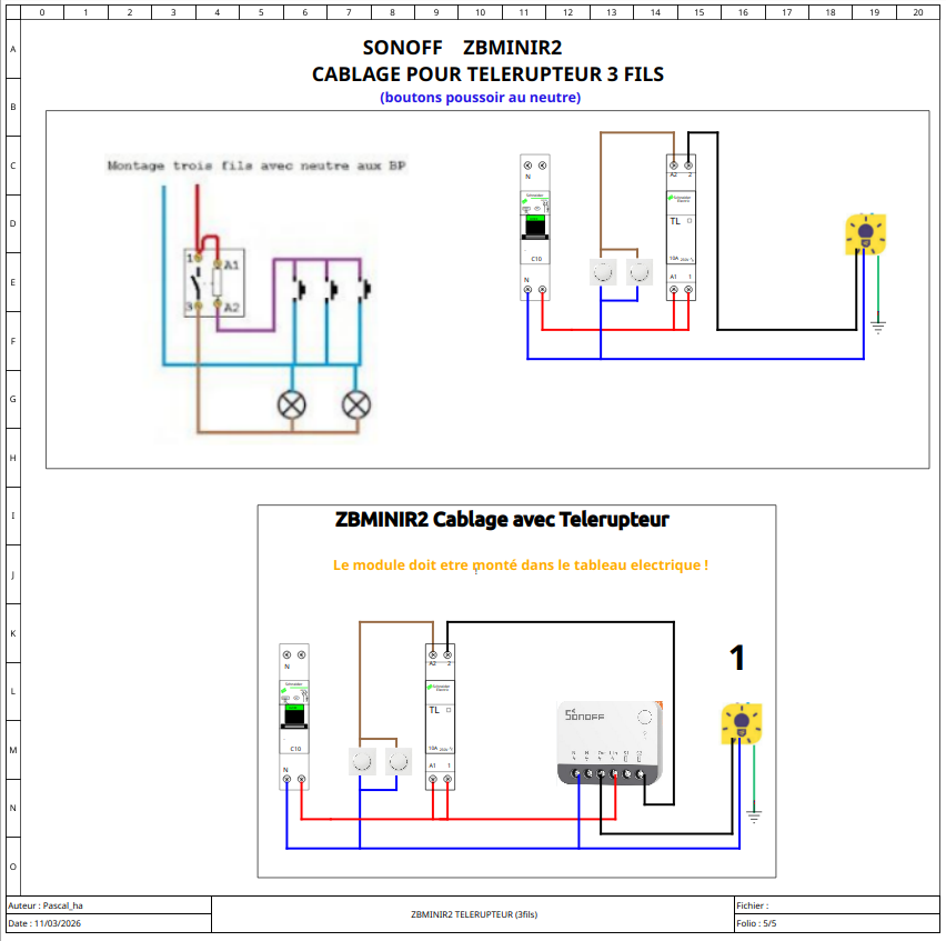 Afin d’aider ceux qui veulent domotiser un télérupteur, je vous post ici les schémas pour mettre en place un module sonoff ZBMINIR2 sur un télérupteur 3 ou 4 fils.