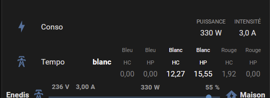 pour mieux me retrouver dans toutes les dénominations du routeur j’ai créé 6 compteur d’énergie une conso jour (ex tempo_bleu_HC )et une pour le mois( tempo_mois_bleu_HC), c’est plus parlant pour moi. ( je débute).