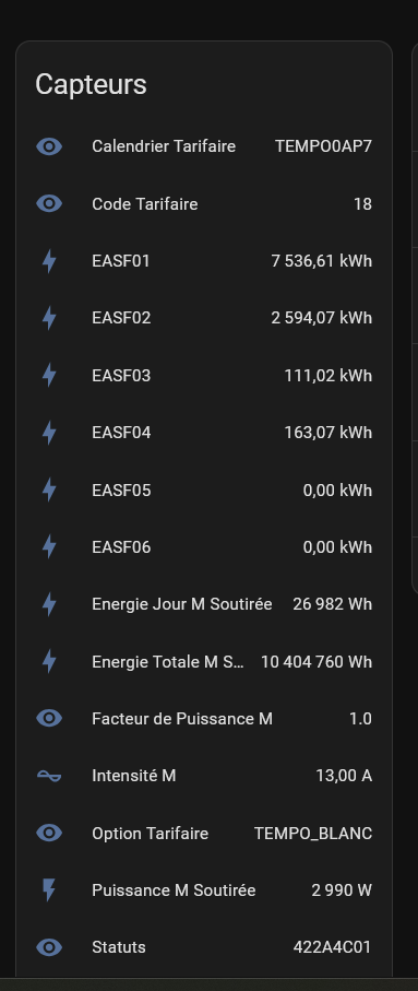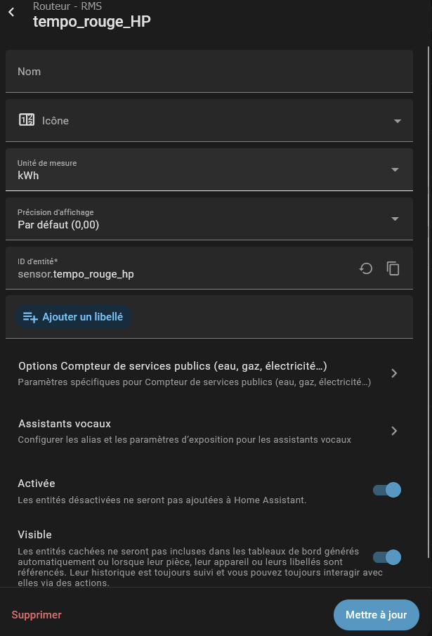 Dans HA apparait une consommation? J’ai supprimer ce compteur ( jour rouge HC) rien ne change lorsque je recréer?