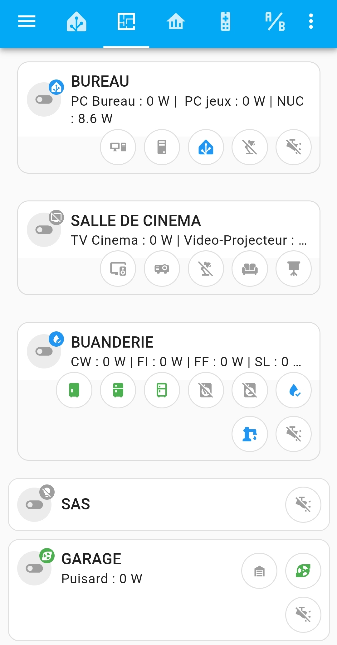 J’avais au début commencer par créer une vue par pièce, mais pas pratique du tout, je pense donc plutôt partir par type d’utilisation : « Technique », « Volets », etc…